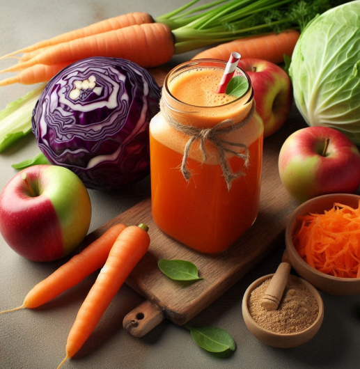 당근, 사과, 양배추는 각각 항산화 성분과 항염증 효과가 뛰어난 식재료들입니다. 이 세 가지 재료를 조합한 해독주스는 우리 몸의 과도한 염증 반응을 억제하고, 자연스러운 디톡스를 도와 신체의 균형을 되찾는 데 도움을 줍니다. 💪